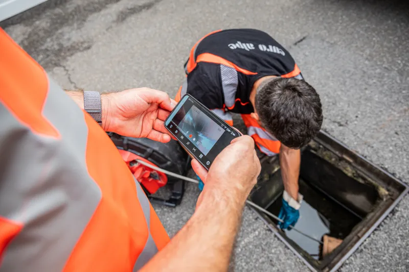 Con l'aiuto della televisione fognaria, i problemi nel sistema fognario possono essere facilmente localizzati e determinati. Questa tecnologia viene utilizzata per valutare le condizioni prima dei lavori di ristrutturazione e per ispezionare le cavità di difficile accesso con un diametro compreso tra 50 mm e 800 mm. Vengono registrati i materiali di costruzione e la profondità dei tombini. La telecamera fornisce una vista a tutto tondo e una visione delle giunzioni, registra le aree danneggiate e le registra con un supporto computerizzato. Il percorso viene tracciato su uno schermo e documentato da un video. Questi dati servono come base per le decisioni sull'ulteriore ripristino.